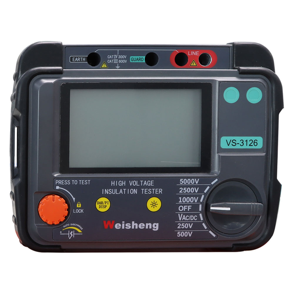 Weshine® VS-3126 is a battery powered High Voltage Insulation Tester with digital and analogue arc display, designed for high voltage insulation resistance testing in the maintenance and servicing of cables, rotating plant machinery, transformers, switchgear and industrial applications.